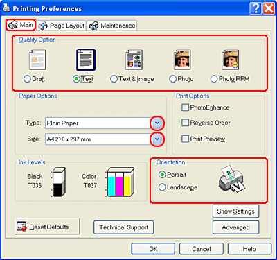 Click the Main tab, then make the Quality Option setting. See the following section for details on the Quality Option settings.