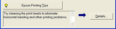 Tips for getting the most out of your Epson printer software appear in the text box at the bottom of the progress meter window. A new tip appears every 30 seconds. For more details on the tip displayed in the window, click the Details button.