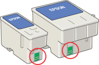 This printer uses ink cartridges equipped with IC chips. The IC chip accurately monitors the amount of ink used by each cartridge, so even if a cartridge is removed and later reinserted, all of its ink can be used. However, some ink is consumed each time the cartridge is inserted because the printer automatically checks reliability.