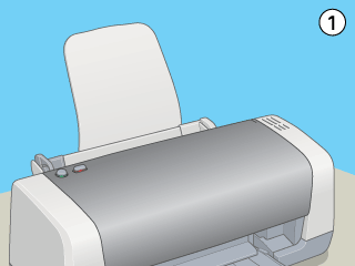 Press the maintenance button. The printer moves the print head and begins charging the ink delivery system. This process takes about thirty seconds to complete. When the ink charging process is finished, the printer returns the print head to its home position, the power light stops flashing and remains on, and the error light goes out.