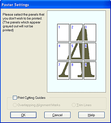 If you want to print only a few of the panels without printing the entire poster, click the panels that you do not wish to print.