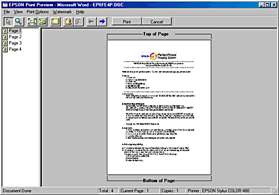 After you have previewed the document, click Print to print the document, or click Cancel to cancel printing.