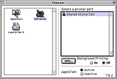 Choose Chooser from the Apple menu and click the icon for your printer. Then, select the port to which the printer is connected.