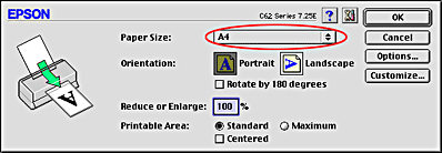 Select A4 as the Paper Size setting. Then, click OK to close the dialog box.