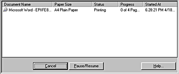 EPSON Spool Manager is similar to Windows Print Manager. If it receives two or more print jobs at one time, it holds them in the order that they were received (with printers on a network, this may be called a print queue). When a print job reaches the top of the line, the EPSON Spool Manager sends the job to the printer. From the Spool Manager, you can view print status information about the print jobs which have been sent to your printer. You can also cancel, pause, and resume selected print jobs.