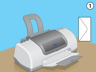 Load envelopes short edge first with the flap side down, as shown in the illustration.