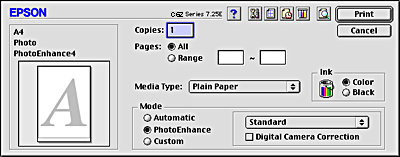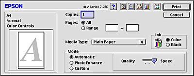 The Mode settings in the Print dialog box give you three levels of control over the printer software, as explained below: