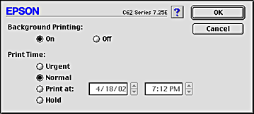 Click the Background Printing icon button in the Print dialog box. The Background Printing dialog box opens.