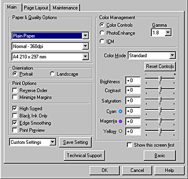 For use with the color matching and image enhancement methods provided by the printer driver. When you select Color Controls, additional settings appear under the Color Management options allowing you to select a Color Mode setting and to adjust the Color Enhancement sliders.