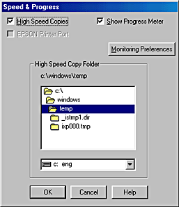 Windows users can make certain print speed settings in the Speed & Progress dialog box. Click the Speed & Progress button on your printer software's Utility menu. The following dialog box appears.