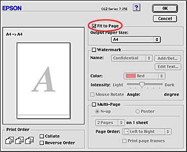 Select the Fit to Page check box on the Layout dialog box (Macintosh).