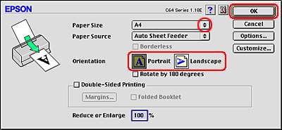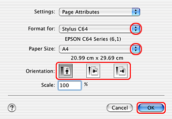 Make the appropriate Format for setting. When printing with standard margins, select Stylus C64.