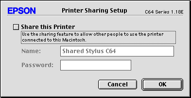 Select the Share this Printer check box, then type the printer name and password information as necessary.