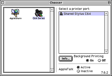 Choose Chooser from the Apple menu. Click the appropriate printer icon and select the printer port that you want to use from the Select a printer port list.