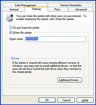 • To monitor the status of a shared printer, EPSON Status Monitor 3 must be installed on each computer. EPSON Status Monitor 3 is automatically installed when you install the printer software for the first time.