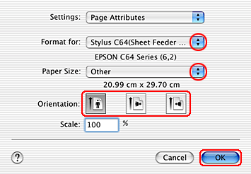 Select Stylus C64 (Sheet Feeder - Borderless) as the Format for setting.