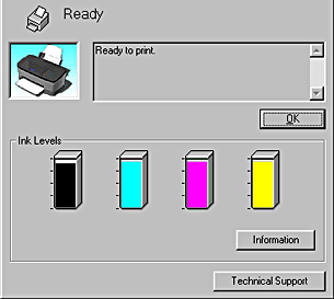 The Progress Meter dialog box appears automatically when you send a print job to the printer. You can check the amount of ink remaining from this dialog box.