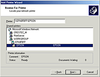 Double-click the icon of the computer that is directly connected to the printer. Then, click the icon for the appropriate printer.