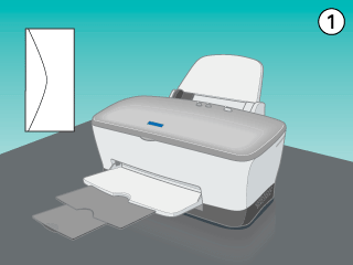 | The folding quality and thickness of envelopes varies widely. If the total thickness of the stack of envelopes exceeds 10 mm, press each envelope in the stack flat before loading. If print quality declines when a stack of envelopes is loaded, load one envelope at a time. |
