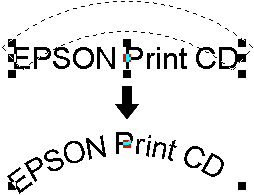 Drag the red handle displayed in the center of the character block upward or downward. The character block curves to the dragged direction.