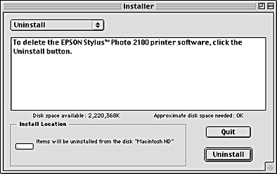 Select Uninstall from the pull-down menu at the top left, then click Uninstall.
