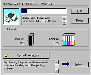 The Progress Meter dialog box appears automatically when you send a print job to the printer. You can check the amount of ink remaining from this dialog box.