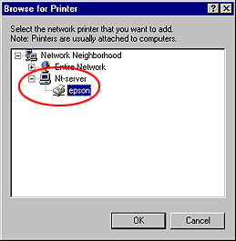 Double-click the icon of the computer that is directly connected to the printer. Then, click the icon for the appropriate printer.