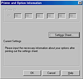Depending on the configuration of your system, the information displayed in the Printer and Option Information dialog box may be updated automatically, or may need to be entered manually.