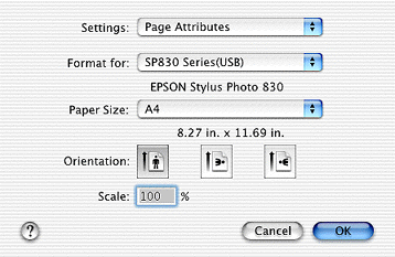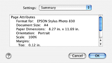 Select Page Attributes or Summary. When Page Attributes is selected, the page setting items will be displayed. When Summary is selected, a list of the current settings will be displayed. For more information on Summary, see Showing the current settings in the Page Setup dialog box. |
