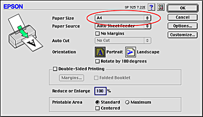 Select A4 as the Paper Size setting. Then, click OK to close the dialog box.