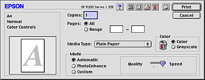 The Mode settings give you three levels of control over the printer software, as explained below.