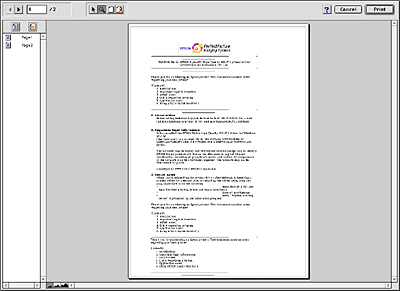 ![]() | Click the Preview button. The Preview dialog box opens and displays a preview of your document. |