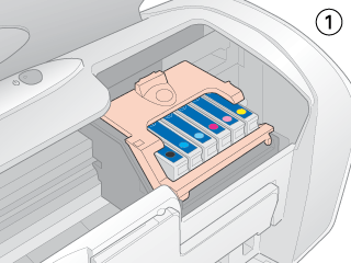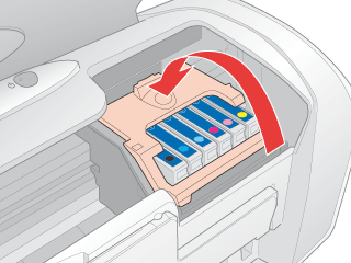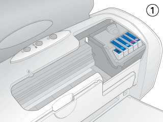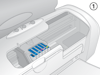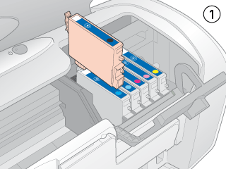 Be sure to always install an ink cartridge into the printer immediately following the removal of the current ink cartridge. If the ink cartridge is not installed promptly, the print head may dry out, rendering it unable to print.