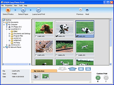 EPSON Easy Photo Print lets you lay out and print digital images on various kinds of paper. The step-by-step instructions in the window let you preview the printed images and get the effects you want without having to make any difficult settings.