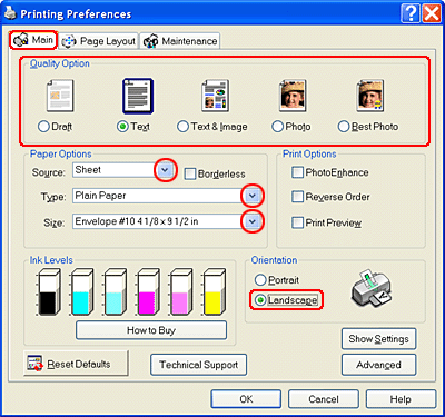 ![]() | Click the Main tab, then make the Quality Option setting. See online help for details. |