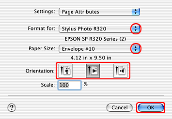 ![]() | Select the appropriate envelope size as the Paper Size setting. |