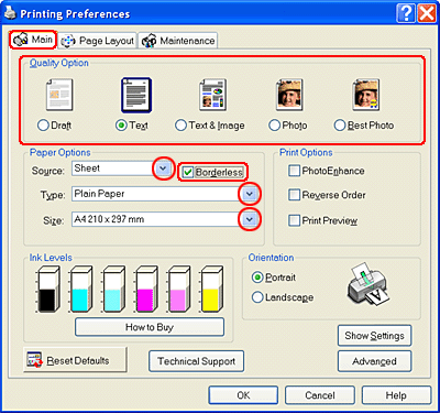 Click the Main tab, then make the Quality Option setting. See online help for details.
