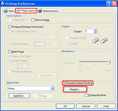 Click the Page Layout tab, then select the Double-Sided Printing check box.