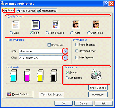 Click the Main tab, then make the Quality Option setting. For details, see online help.