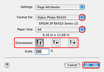 Make the appropriate Paper Size and Orientation settings.