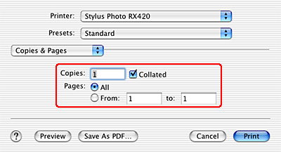 The Copies & Pages settings available are a standard feature of Mac OS X. See your operating system's documentation for details.