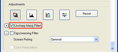 Select the Unsharp Mask Filter check box in the Adjustments section.