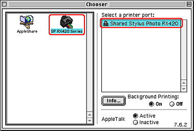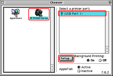 Choose Chooser from the Apple menu. Click an icon for this product and select the printer port that you want to use from the Select a printer port list.
