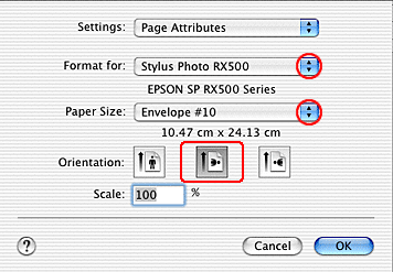 ![]() | Select Stylus Photo RX500 as the Format for setting. |
