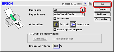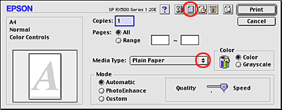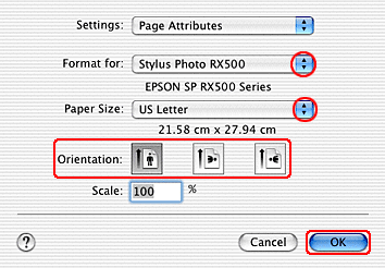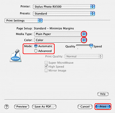 ![]() | Select Stylus Photo RX500 as the Printer setting. |
