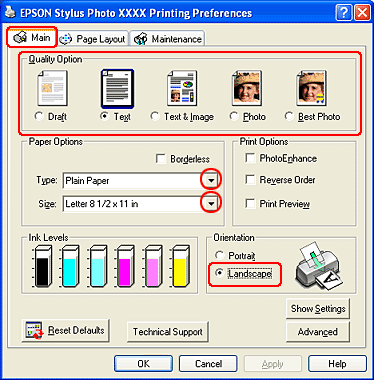 ![]() | Click the Main tab, then make the Quality Option setting. For details, see online help. |
