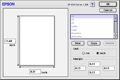 If the appropriate paper size is not included in the Paper Size list in the Page Setup dialog box, follow the steps below to define a new custom paper size.