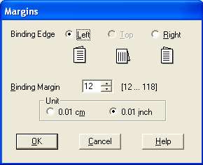 Specify the width of the binding margin in the text box. You can enter any width from 0.12 inch to 1.18 inch or from 0.3 cm to 3.0 cm.