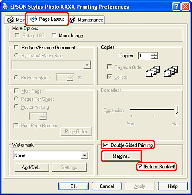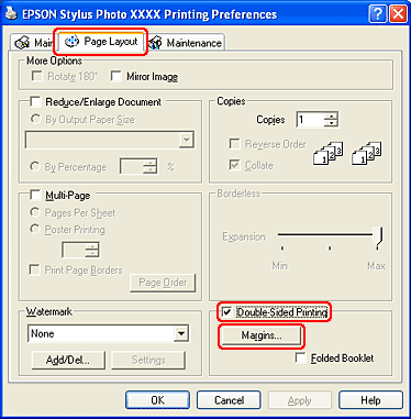 This feature is not available when selecting the Borderless check box on the Main menu (Windows) or in the Page Setup dialog box (Macintosh).