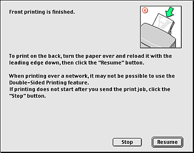 Once the paper is reloaded, click Resume to print the even-numbered pages.